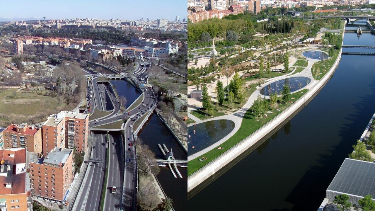 W Madrycie jeszcze kilkanaście lat temu rzeka Manzanares była zamknięta w betonowym kanale i otoczona ruchem samochodowym. Dziś funkcjonuje tam Madrid Río – kilkukilometrowy park, który przyciąga mieszkańców i stał się jednym z najważniejszych elementów miejskiej przestrzeni.