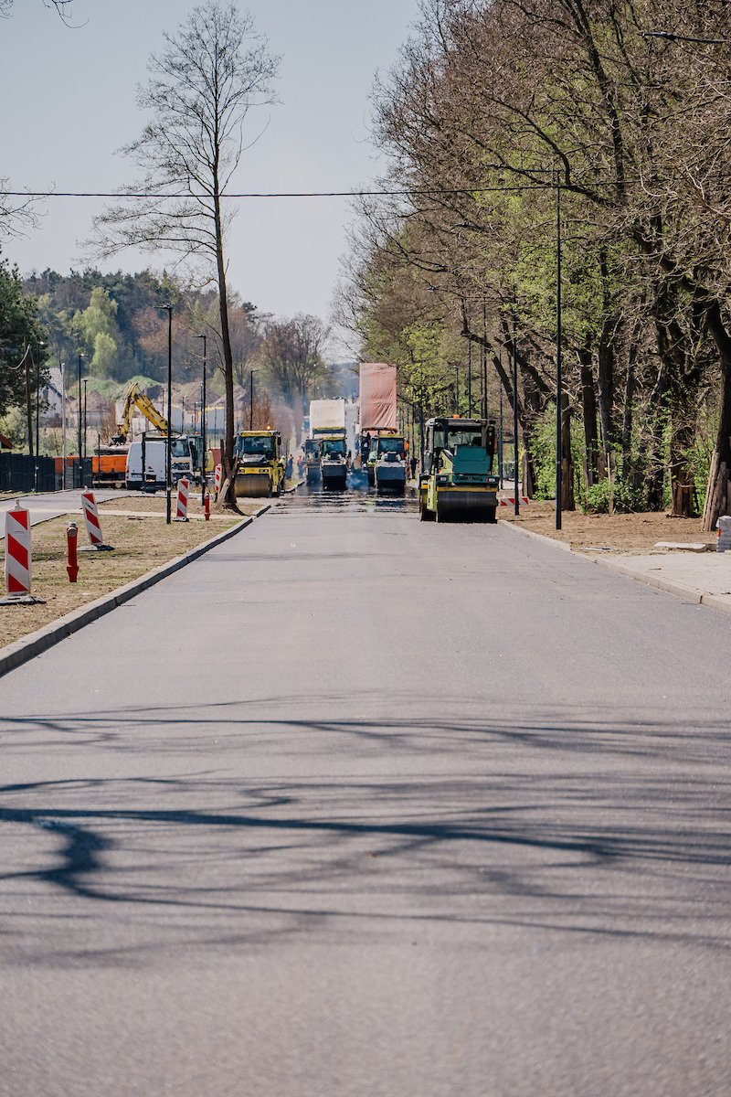To końcówka jednej z ważniejszych modernizacji w zachodniej części Łodzi. Oprócz jezdni powstaje także droga rowerowa i infrastruktura towarzysząca. Po zakończeniu asfaltowania wykonawca przejdzie do prac wykończeniowych i odbiorów technicznych.