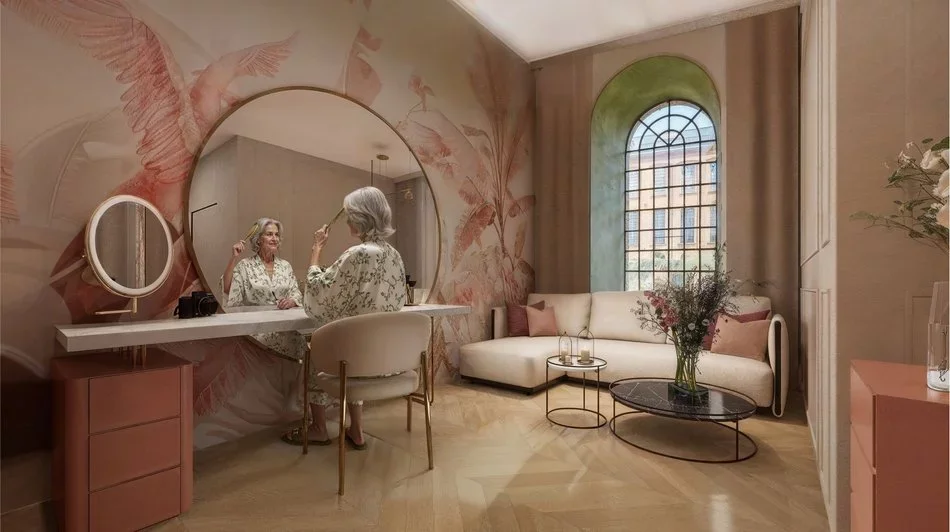 Jednym z kluczowych komponentów inwestycji będzie rezydencja dla seniorów PRESTIA, obejmująca około 240 mieszkań wspomaganych. To model „senior living”, który zakłada pełną samodzielność mieszkańców, ale z dostępem do usług opiekuńczych, rehabilitacyjnych i społecznych. W budynku znajdzie się teleopieka, całodobowa recepcja, restauracja, przestrzenie wspólne, strefy aktywności i udogodnienia projektowane z myślą o osobach starszych.